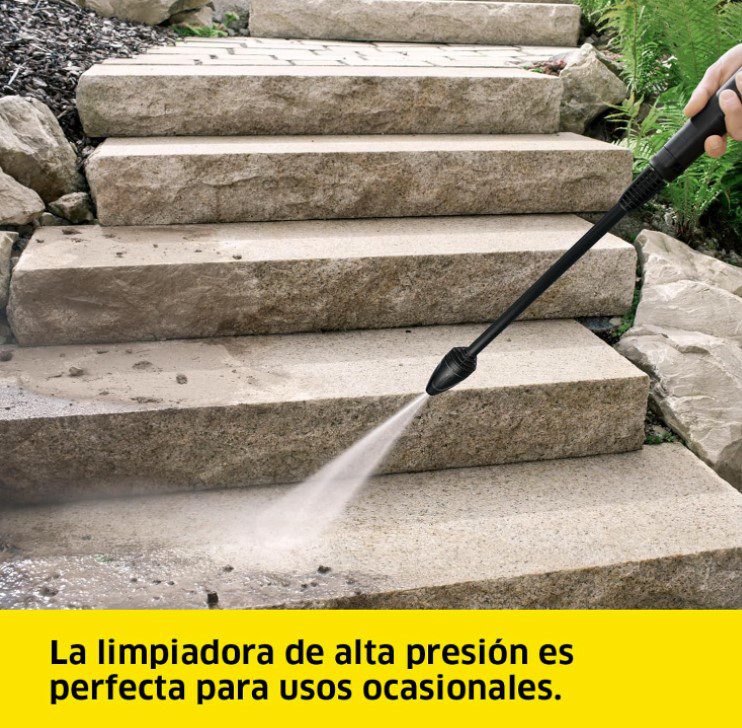 Aunque no tiene la potencia de modelos industriales, cumple con creces para tareas como limpiar coches, terrazas o muebles de jardín.