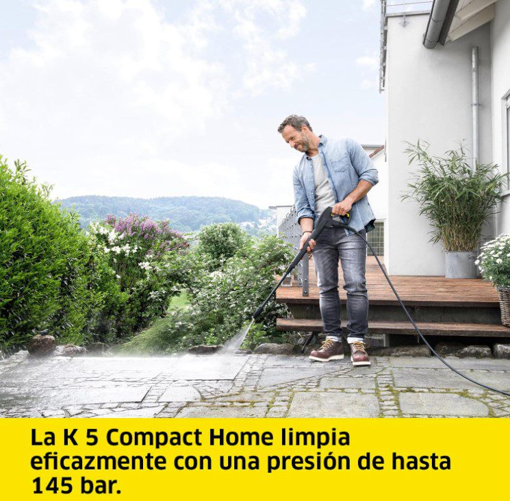 La Kärcher K5 Compact Home es una excelente opción para aquellos que buscan una hidrolimpiadora compacta, potente y fácil de manejar. Su presión máxima de 145 bares y el caudal de 500 l/h ofrecen un rendimiento superior, ideal para limpiar grandes superficies exteriores, coches, y terrazas de manera eficiente. El diseño compacto la hace perfecta para usuarios que requieren movilidad sin perder la potencia de una hidrolimpiadora de alta gama.