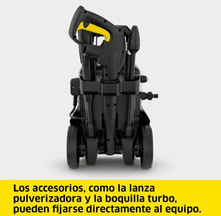 - Accesorios incluidos: Viene equipada con una lanza pulverizadora y una boquilla de detergente, lo que te permite adaptarla a distintos tipos de tareas de limpieza.